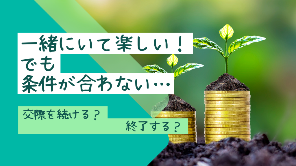 プレ交際中、相手と一緒にいて居心地は良いんだけど、条件が合わずに悩んでしまった場合、どうしますか?
