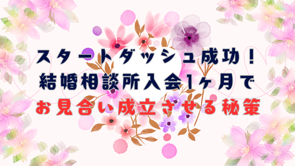 【お見合い成立率UP⤴】結婚相談所のスタートダッシュが成功のカギ!